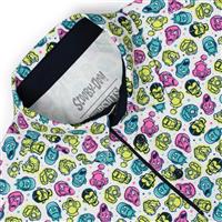 RSVLTS Phantom Faces Short Sleeve Button-Down Shirt. Sure they’re freaky, fearsome, and frightening, but when you hit these classic villains with a splash of gorgeous pastel colors… ok, they’re still all those things. But at least you can add one more adjective to the list: Stylish. Sold for $70.00.
