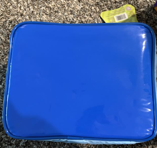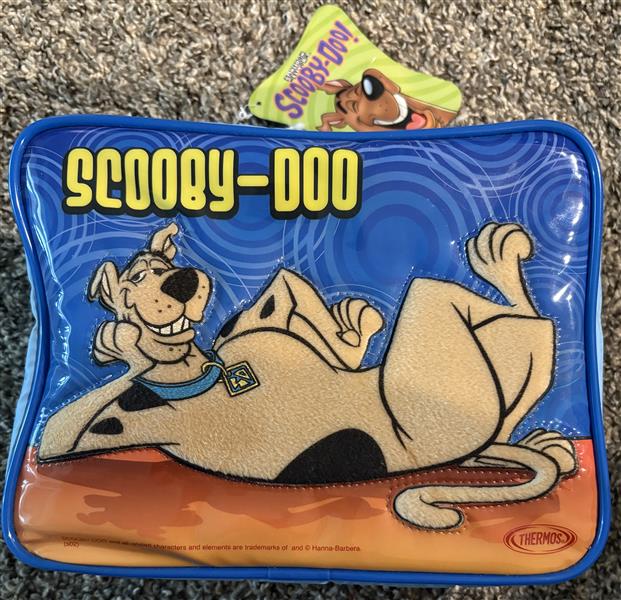 2002 Blue Thermos brand lunchbox with Scooby-Doo on the front. Comes with cup, Pringles container, and snacks.