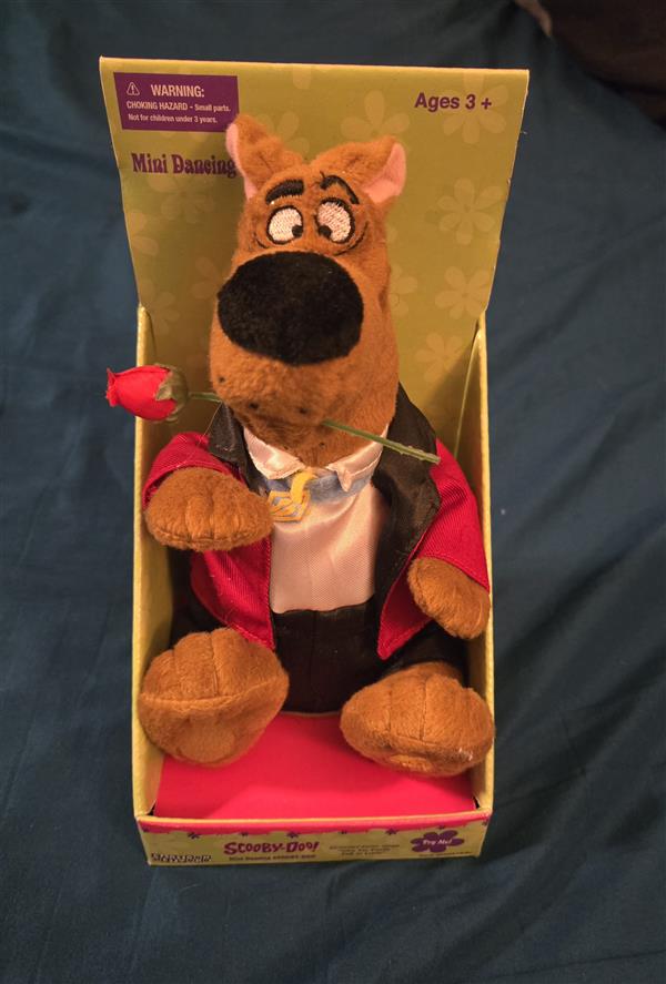 Mini Dancing Scooby-Doo. There's no mystery about it. Scooby-Doo is in Puppy Love and he's on his best behavior. He had a rose under his nose and in his mouth just for you. On top of that he's prepared an adorable performance of "Why Do Fools Fall In Love." So not only is he man's best friend, he the the perfect for any lucky lady.