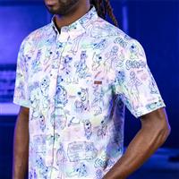 RSVLTS Scooby Doodles Short Sleeve Button-Down Shirt. Scooby™, Shaggy™, Fred™, Velma™, and Daphne™ are drawn together (literally) on this groovy sketchpad-style shirt sporting a tie dye-esque color scheme. Plus, everyone’s favorite sidekick makes an appearance… Scrappy-Doo™! Sold for $70.00.