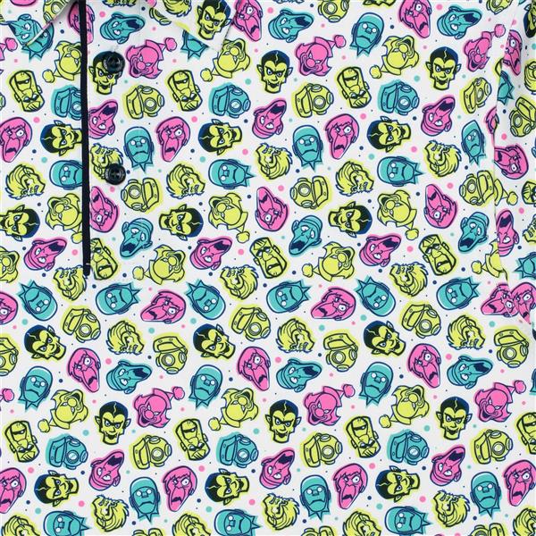 RSVLTS Phantom Faces Short Sleeve Button-Down Shirt. Sure they’re freaky, fearsome, and frightening, but when you hit these classic villains with a splash of gorgeous pastel colors… ok, they’re still all those things. But at least you can add one more adjective to the list: Stylish. Sold for $70.00.