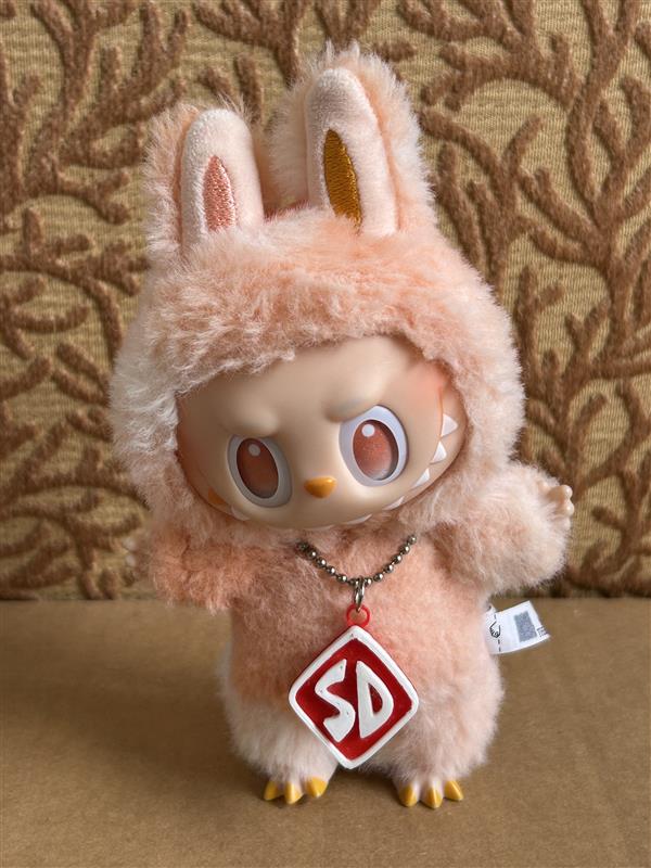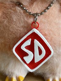 3D Printed Red and White Scooby Doo Dog Tag Charm for Labubus! I made this a long time ago but I do NOT have the file for the Scooby Doo Dog Tag anymore! It used to belong to my Ty Scooby Doo Beanie Buddy but his collar I gave him frayed so I bought him a new collar from the Dollar Tree and then I had the tag left over! Today I just put it on my Labubu Happi (Happiness) and it worked out perfectly! This is a 3D printed project by the way so it is handmade!